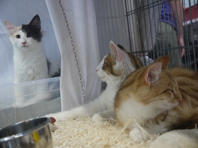 Hund & Heimtier - Leipzig Mit dabei waren Quayla, Amy und PiVi. Im Großen und Ganzen hat uns die Heimtiermesse ganz gut gefallen. Was uns, und vielen anderen auch, gar nicht gefallen hat, war die Prozedur der 'Best in Show' Auswahl. Es wurden alle nominierten (Wurf, Baby, Kitten, Jugend, Erwachsene und Kastraten) einer Kategorie gleichzeitig nach vorne gerufen. Somit mussten alle warten, bis die jeweiligen Gruppen "abgegessen" waren. Das blödeste an der Sache war, dass von alt nach jung gewertet wurde. Somit standen alle mit ihren Jungtieren bis zum Schluss. Und die "alten Hasen", die sowas ja schon gewöhnt sind, durften als erte wieder gehen. Jedenfalls die, die nicht 'BiS' gemacht haben. Bei uns war dann noch das Problem, dass alle drei nominiert waren. Somit mussten wir erstmal eine andere Züchterin bitten uns zu helfen. Vielen Dank noch einmal!